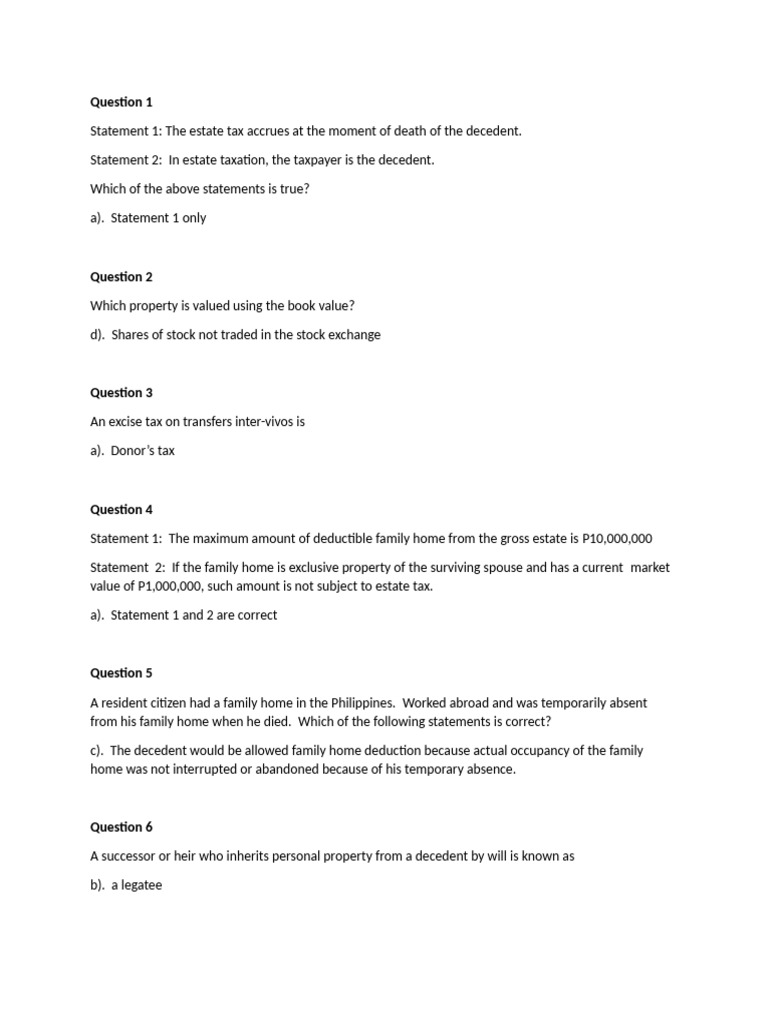 Prelim Examination Business Tax Pdf Tax Deduction Estate Tax In The United States